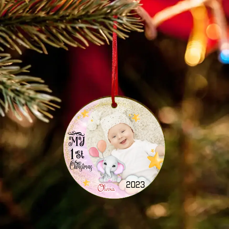 My First Christmas Elephant - Personalized Photo Acrylic Ornament