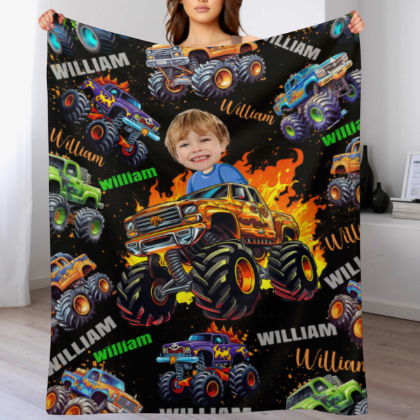 Name Face Custom Blanket Personalized Creative Boys Riding Truck Blanket