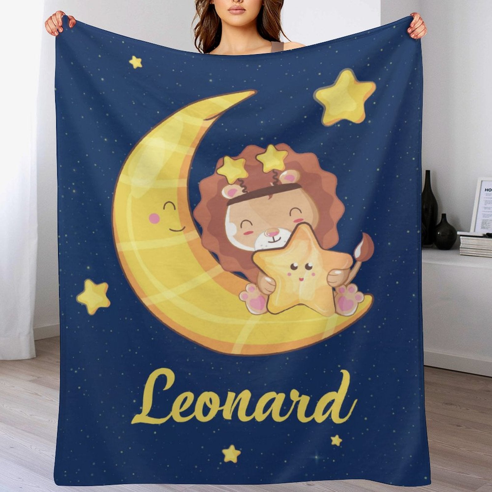 Personalized Baby Boy Moon Lion Blanket