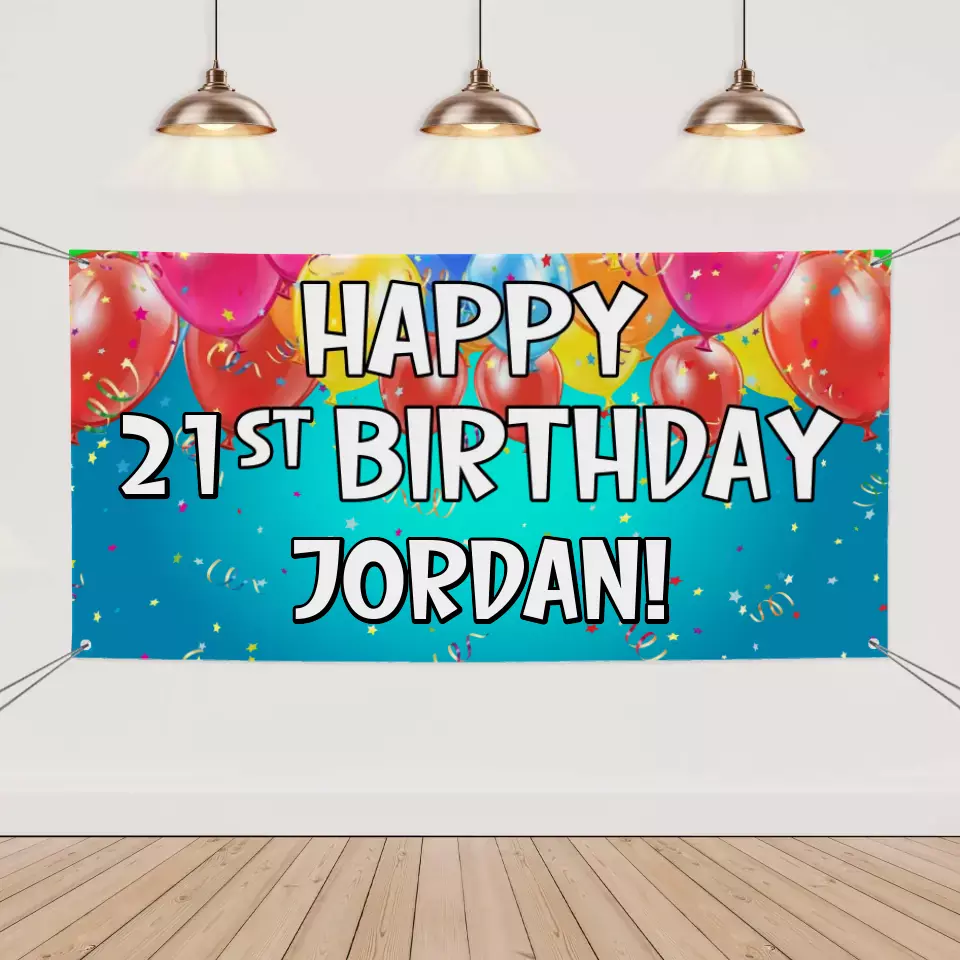 Personalized Balloon Ribbon Birthday Banners - Birthday Decoration Hanging Banner
