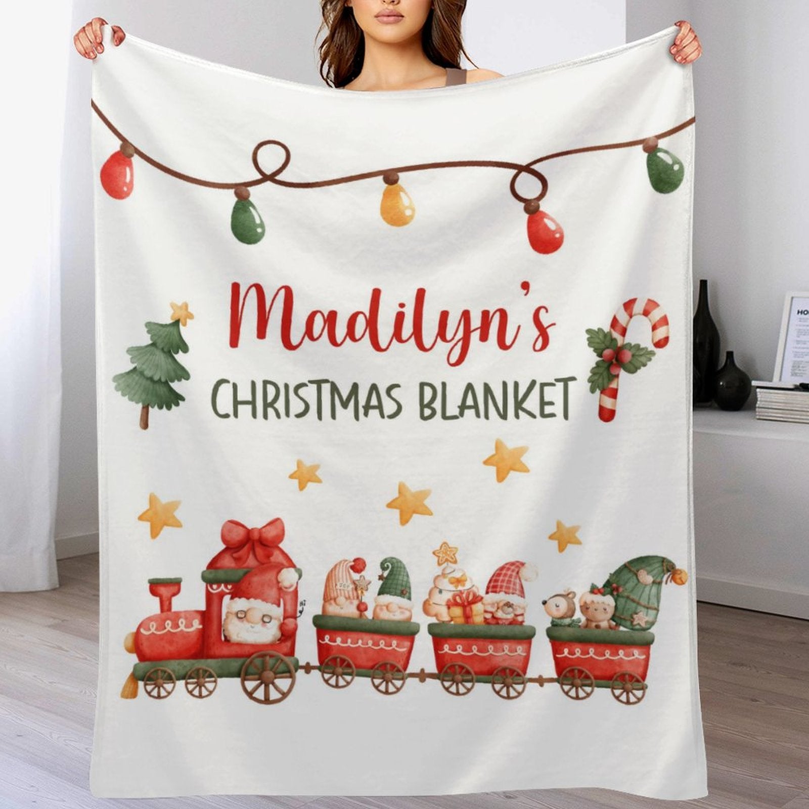 Personalized Christmas Santa Train kids Baby Blanket
