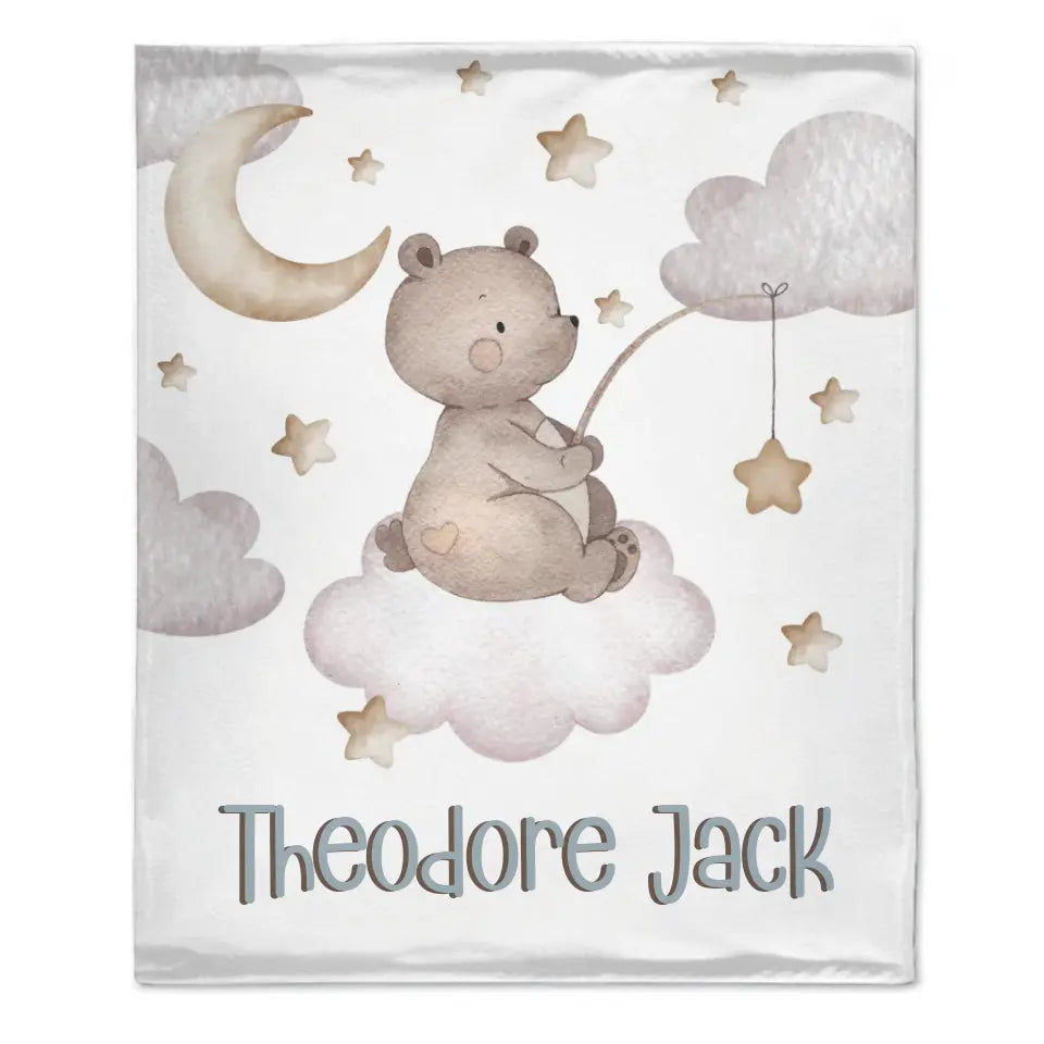 Personalized Custom Baby Boy Name Blanket - Bear Moon Stars in Sky Blanket, Newborn Boy Baby Gift
