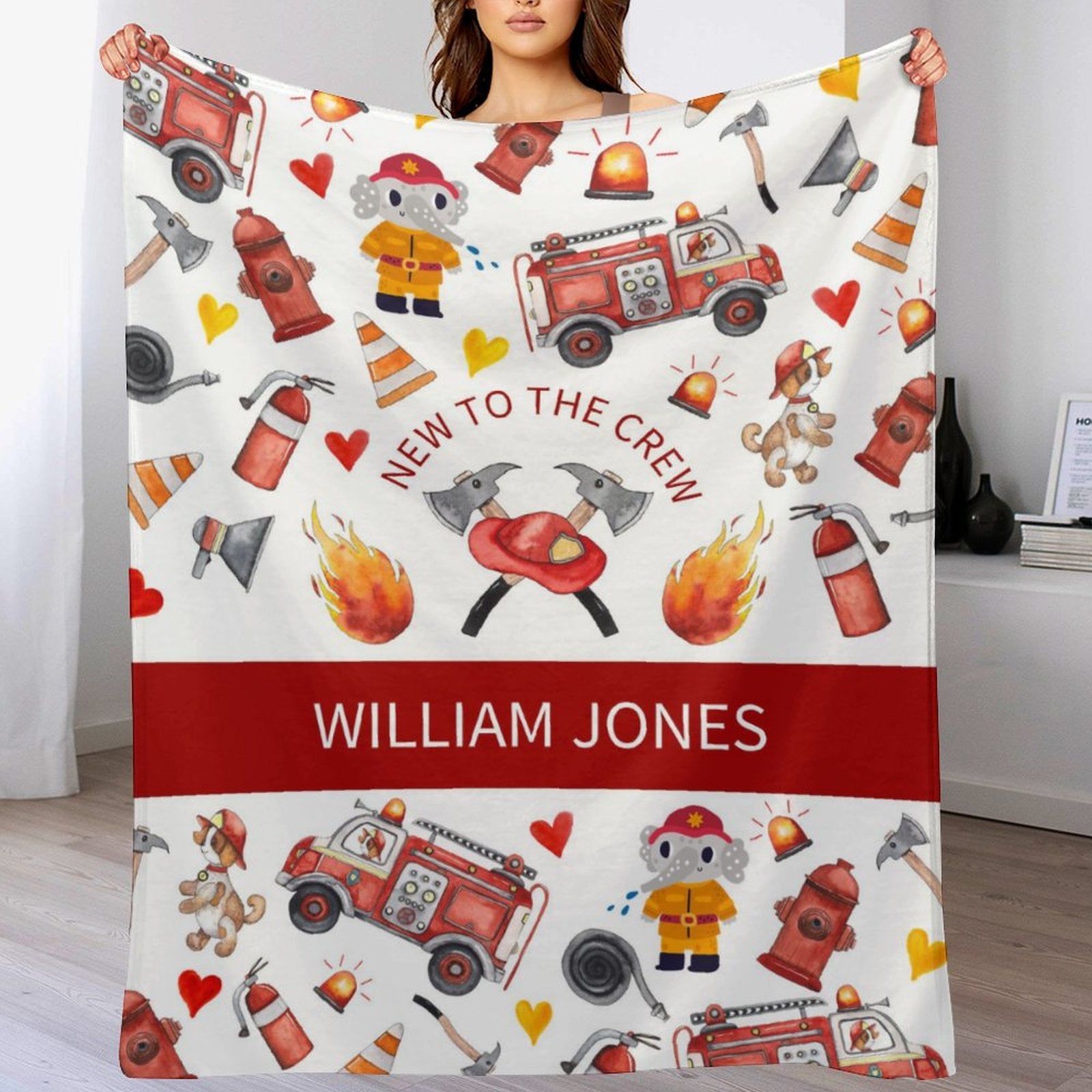 Personalized Custom Name Baby Blanket - Fire Service Firetruck Fireman