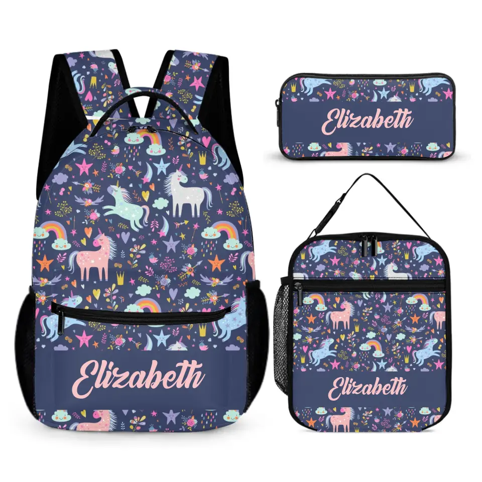 Personalized Custom Name Backpack - Clouds Raindrops Rainbow Stars Unicorn