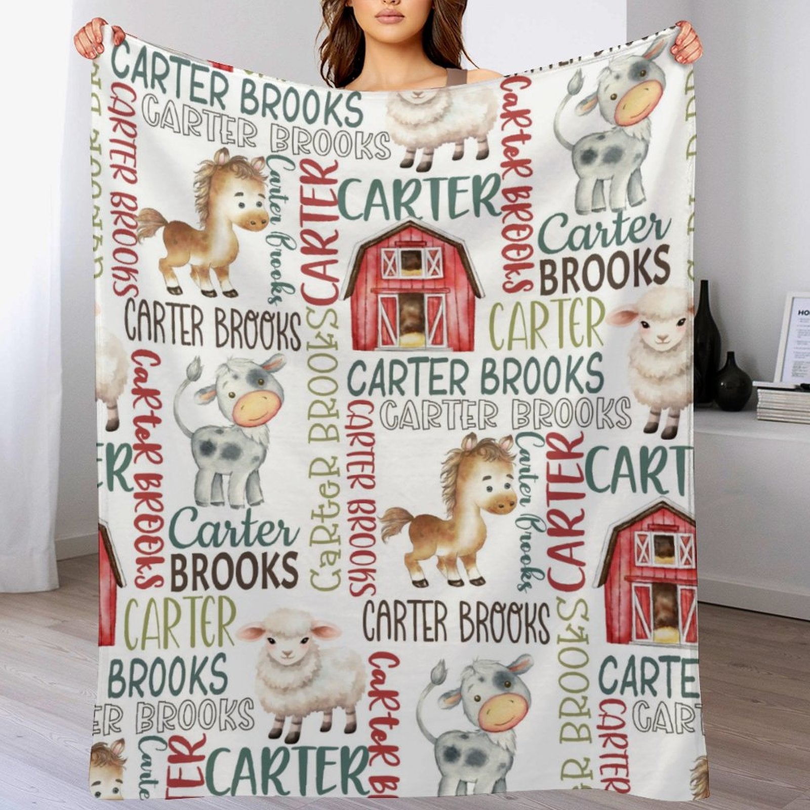 Personalized Farm Animal Blanket - Custom Name - Gift - Farm Blanket
