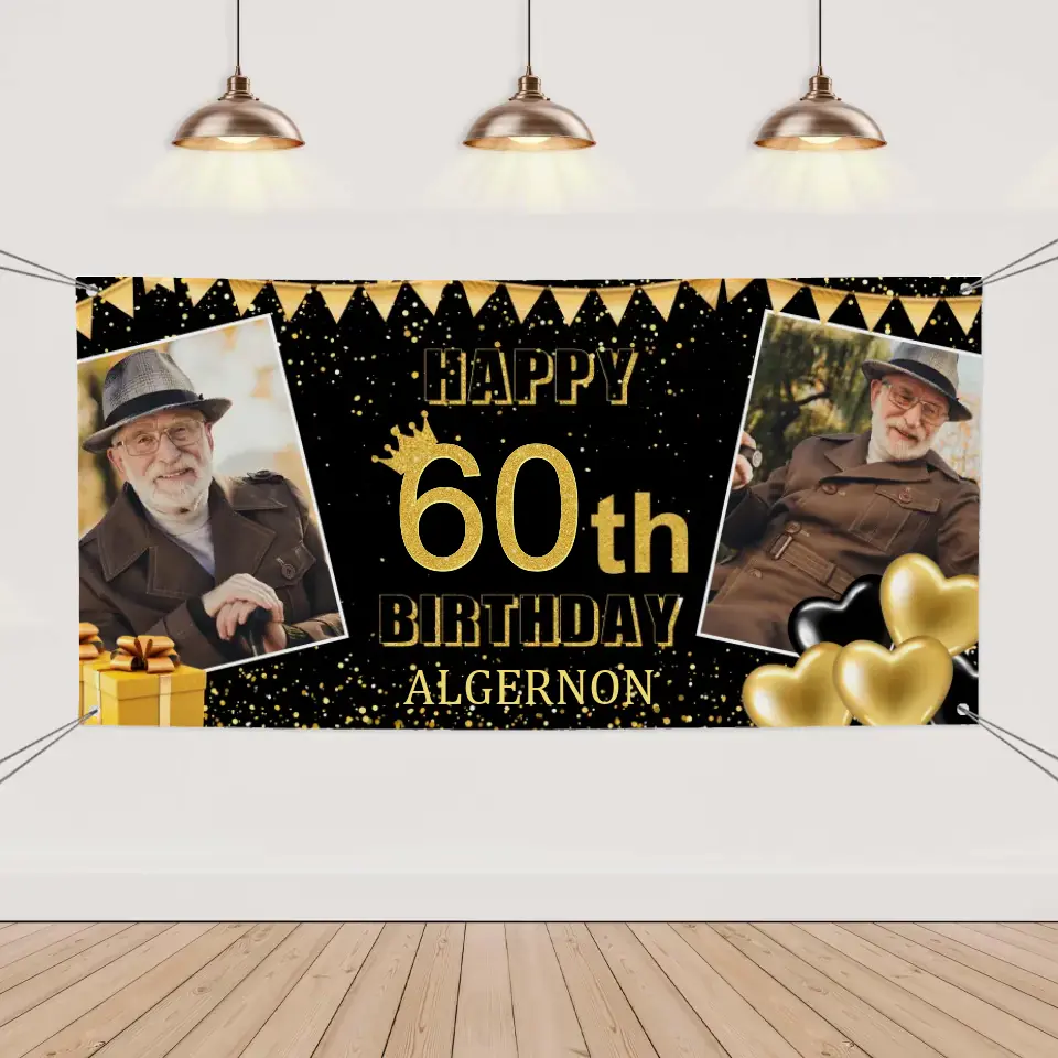 Available Product: Personalized Gold Banner With Name Photo, Birthday Decorations