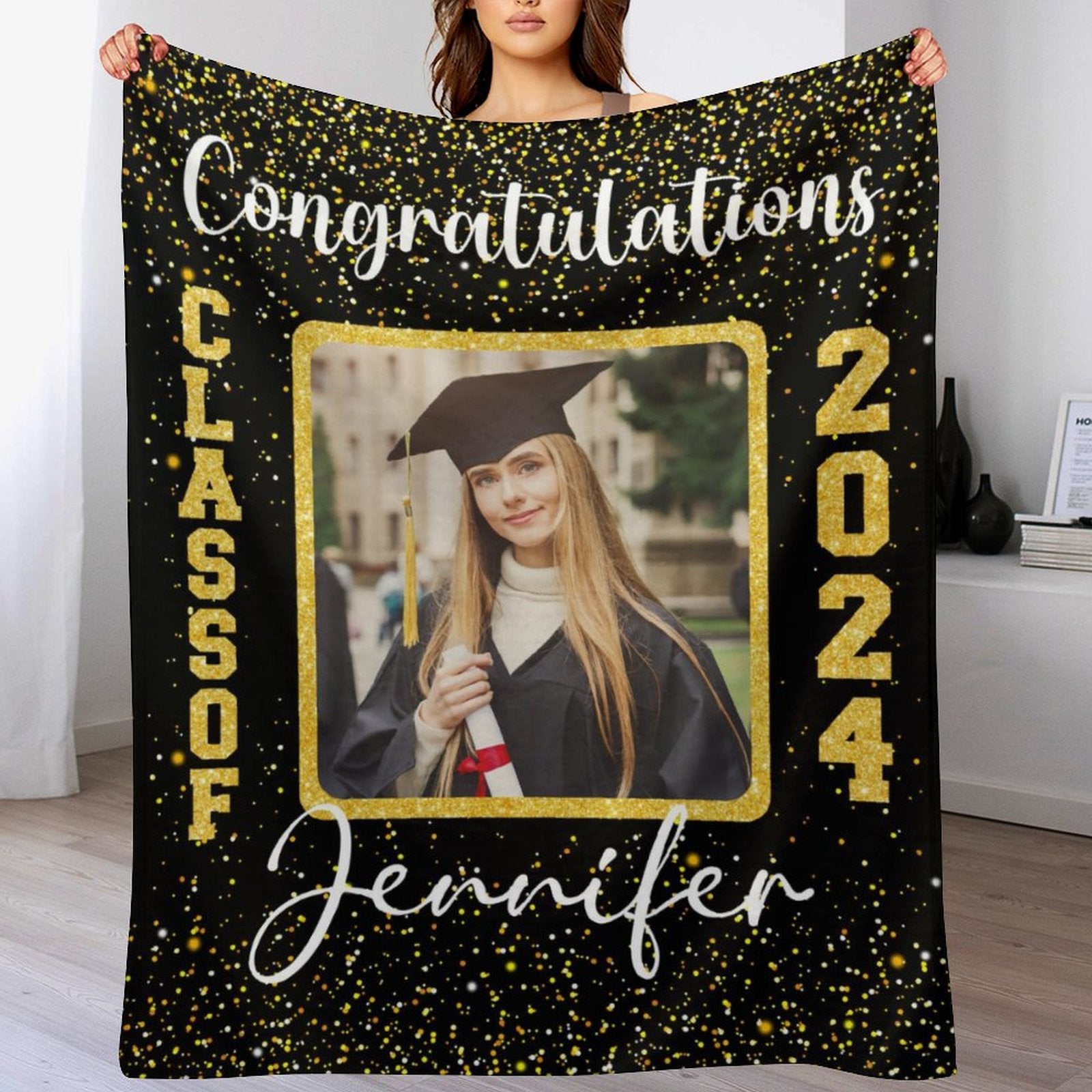 Personalized Graduation Blanket 2024 Custom Photo and Name Congratulations Graduation Gift