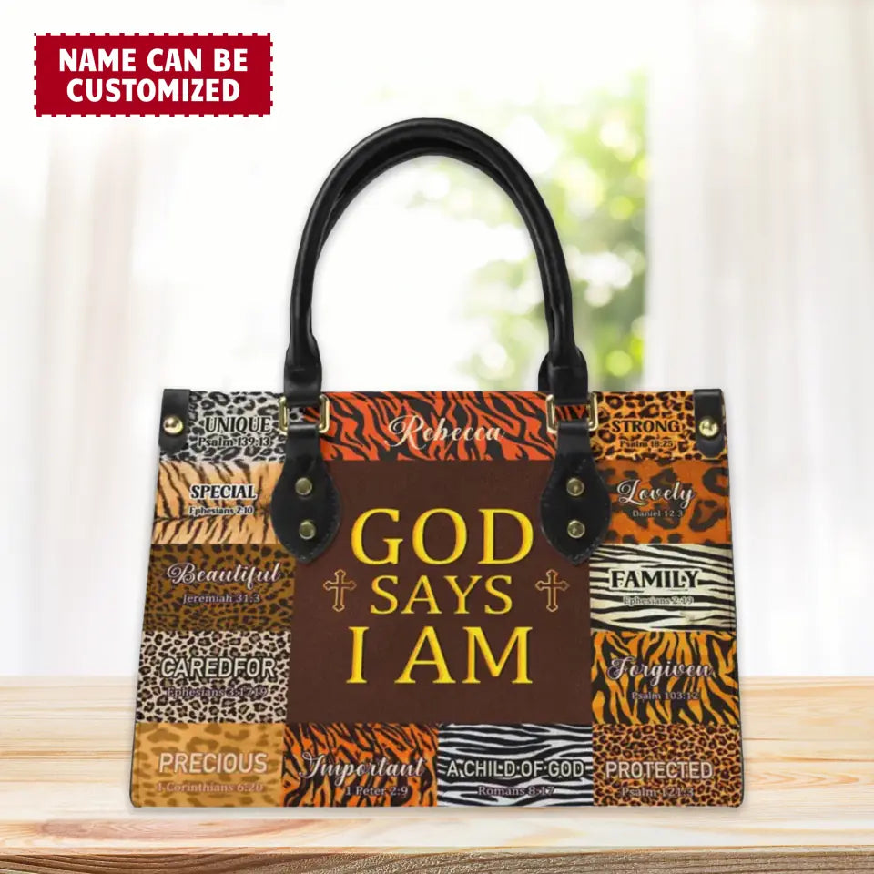 Available Product: Personalized Leather Bag - God Says I Am Unique