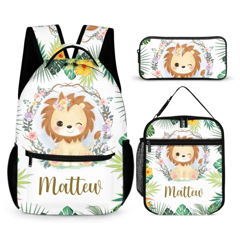 Personalized Lion Cub Wearing Flowers Backpack for Girls Boys