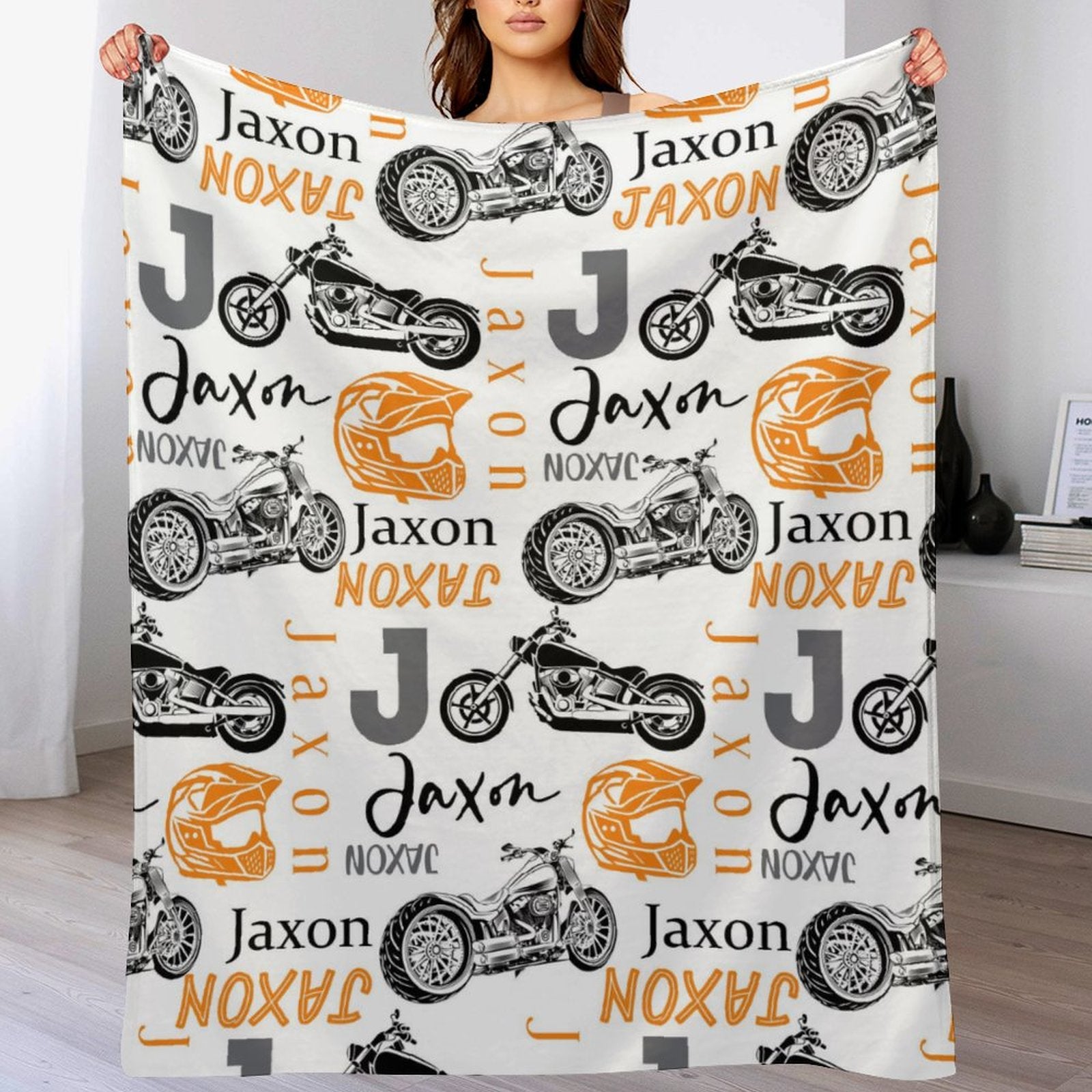 Personalized Motorcycle Theme Custom Name Blanket
