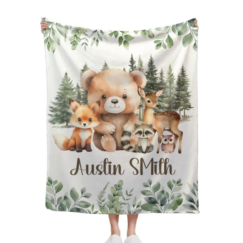 Personalized Woodland Animal Name Baby Blanket for Boys