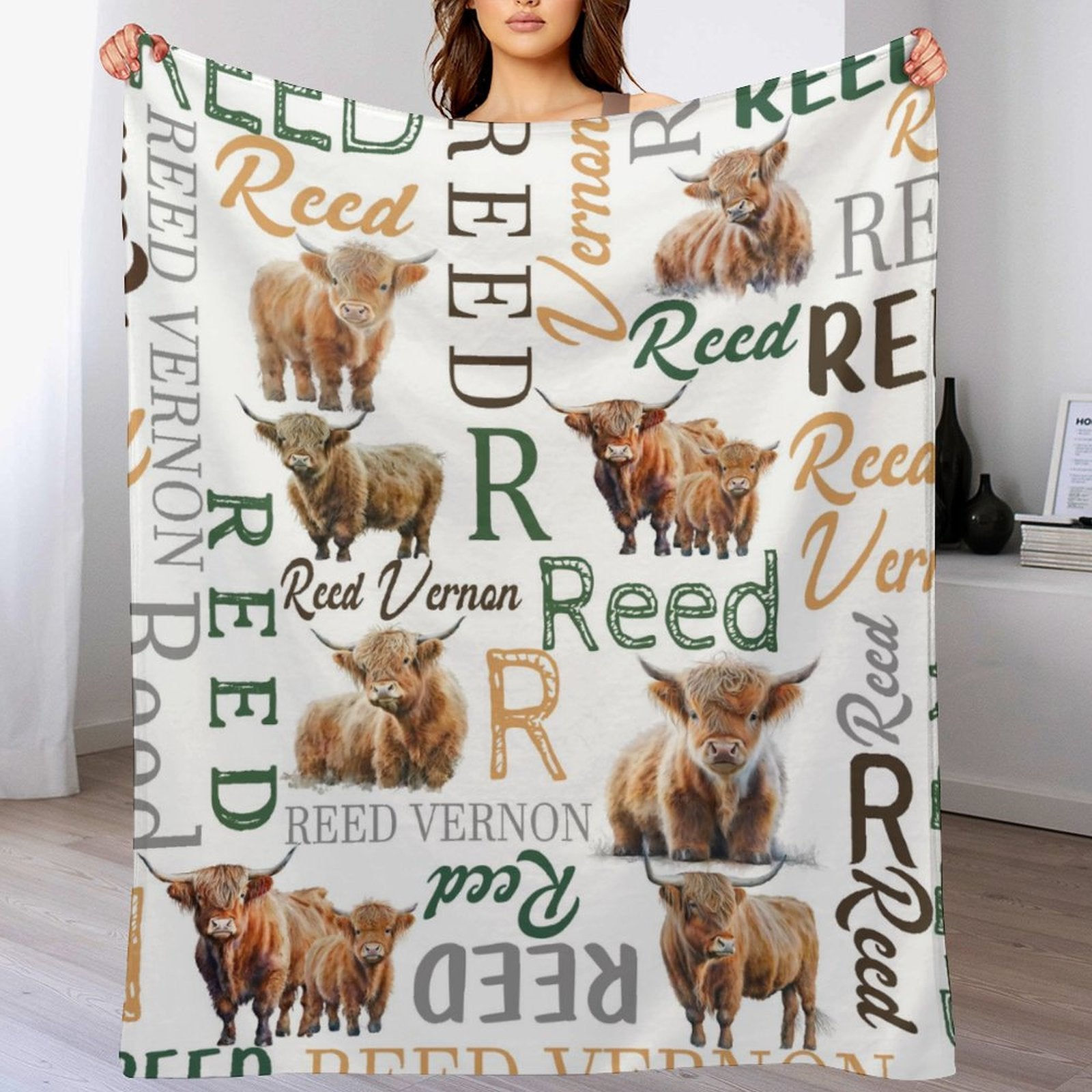 Personalized Name Blanket - Highland Cow Blanket - Personalized Baby Blanket