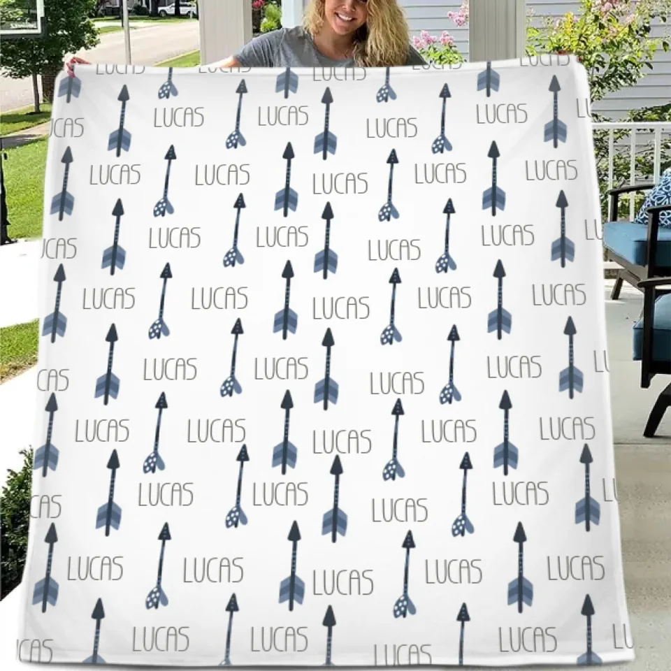 Personalized Name Custom Blue Arrow Baby Boy Blanket, Gift for Kids