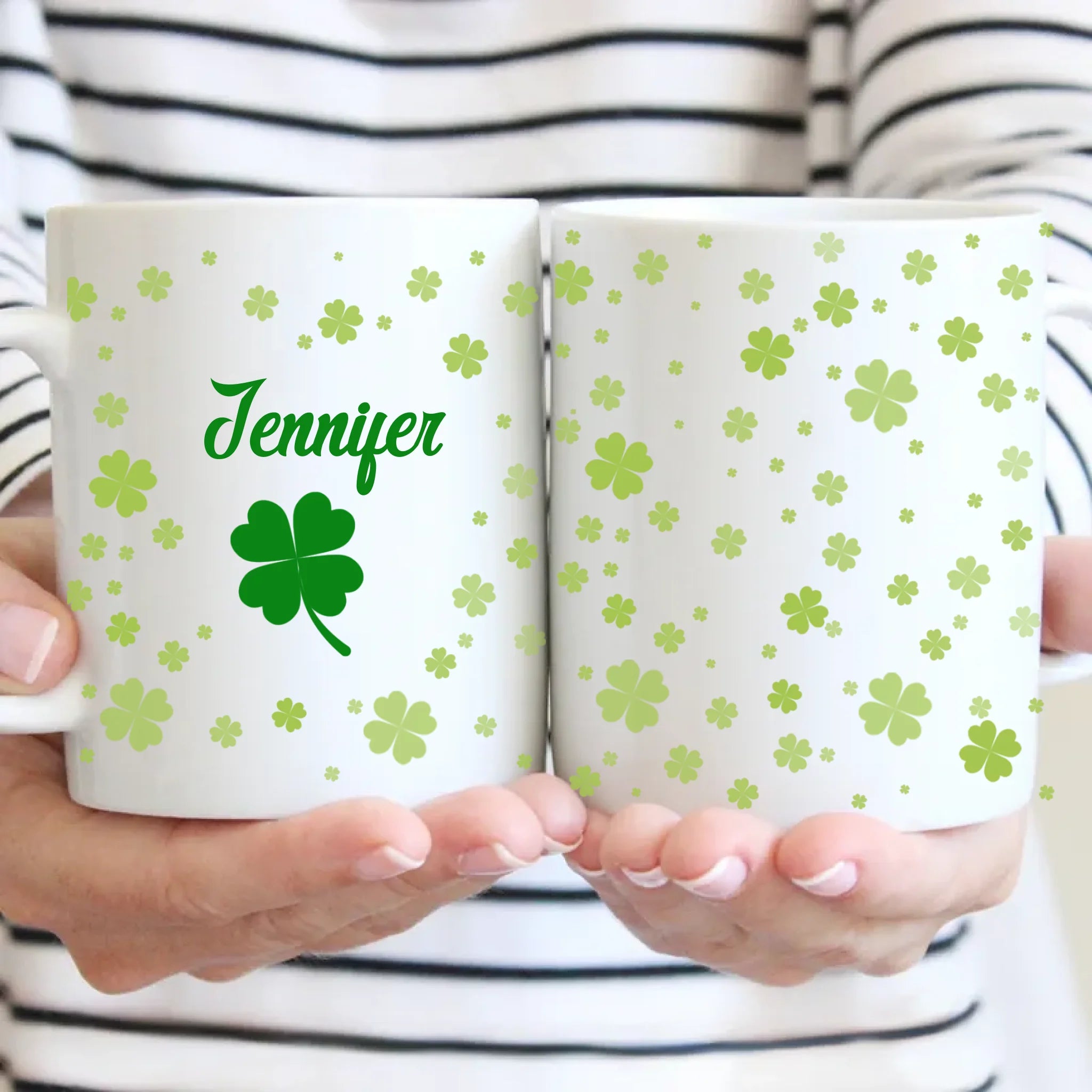 Available Product: Personalized Name Custom Irish Four Leaf Clover Ceramic Mug - St. Patrick's Day Gift - For Family and Friends