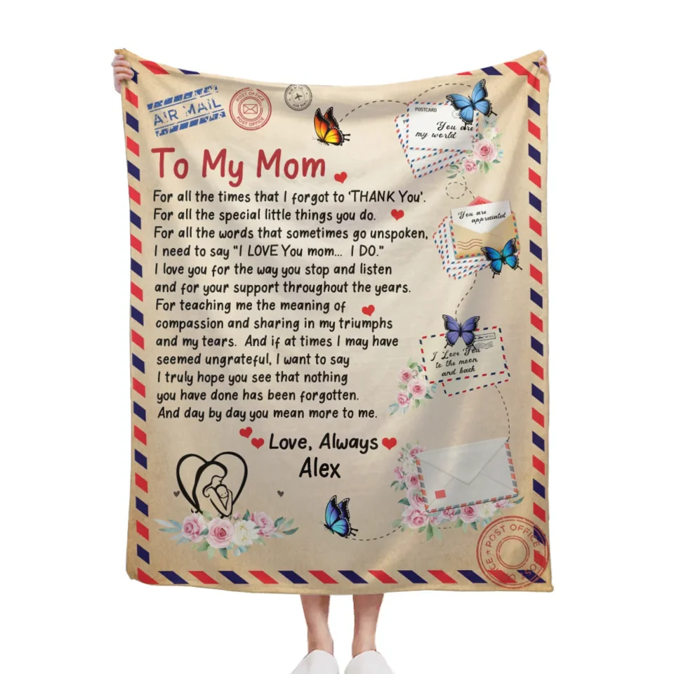 Personalized Name Custom Postcard Blanket - Gift for Mom