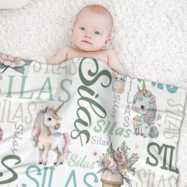 Personalized Name Custom Unicorn Baby Blanket - Gifts for Daughter Granddaughter - Birthday Gifts