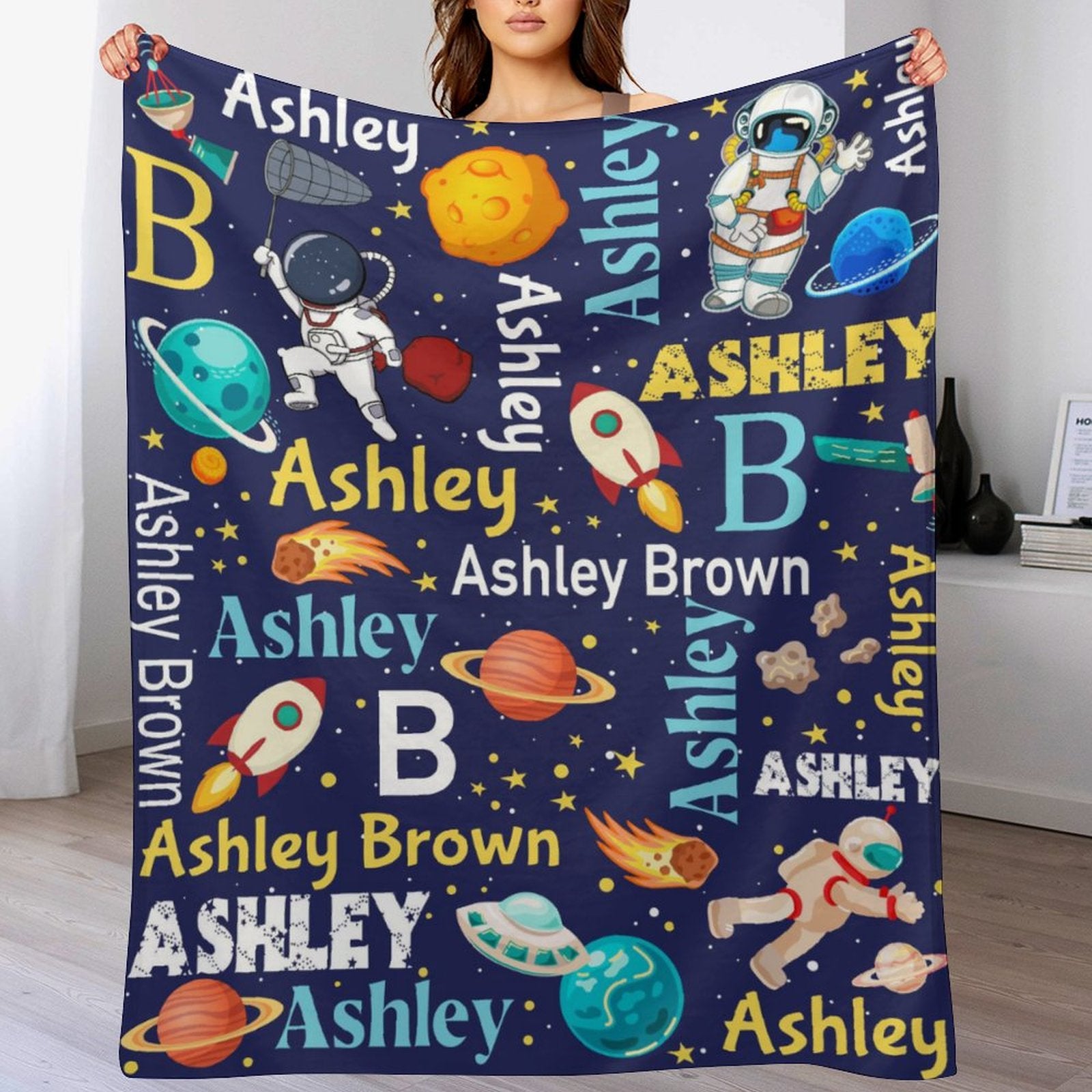 Personalized Space Theme Blanket with Name Gift for Children