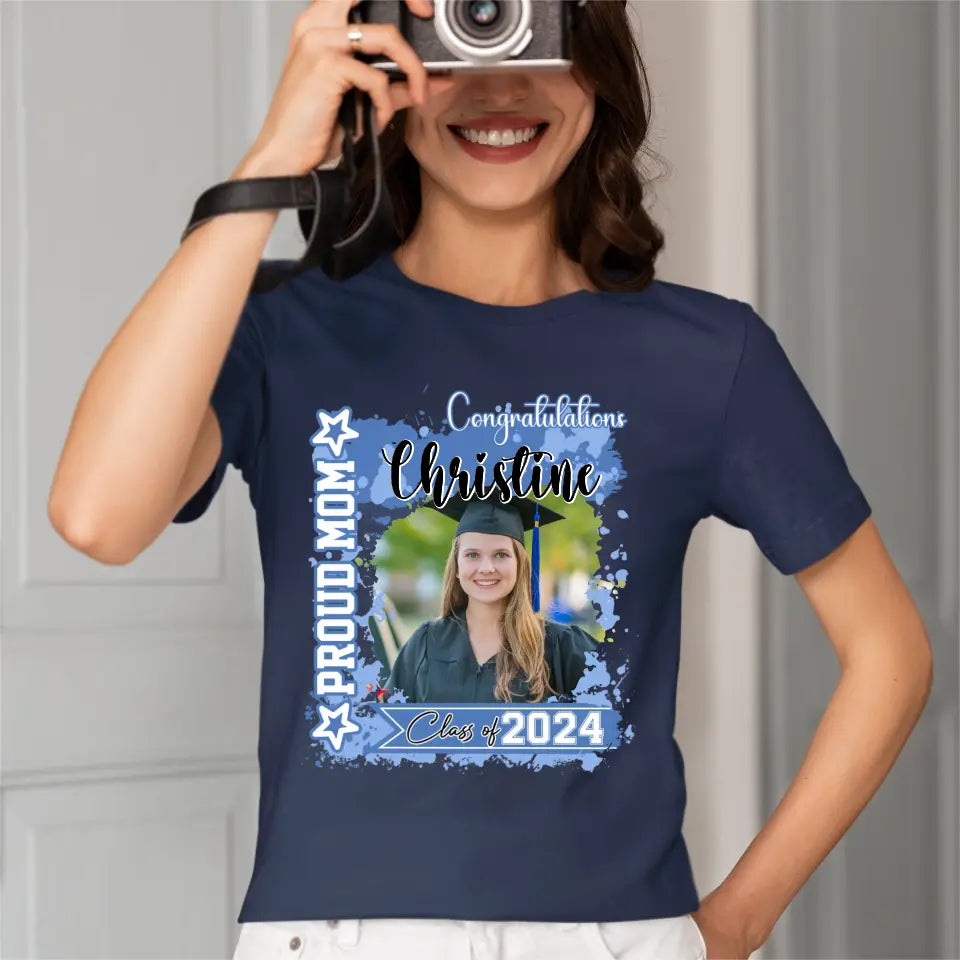 Personalized T-shirt - Graduation Keepsake Gift - Watercolor Proud Mom Dad Of A 2024 Graduate Photo