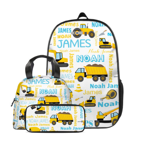 Personalized Toddler Backpack Light Construction Truck Kids Custom Backpack