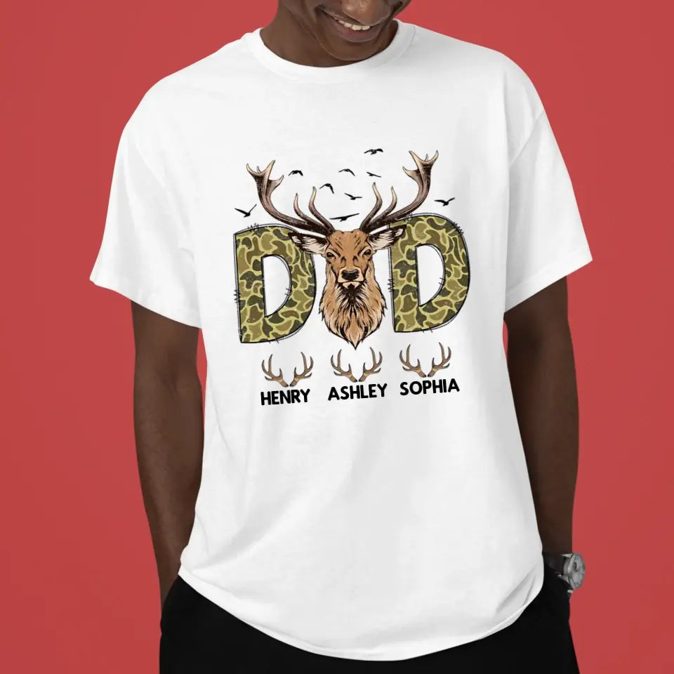 Reindeer Dad Hunting Camouflage Personalized Shirt, Father's Day Gift / white / M