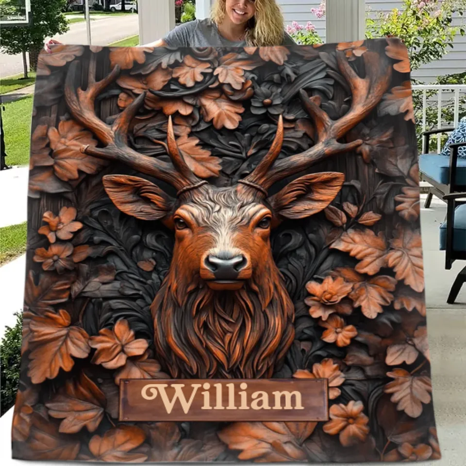 Available Product: Stunning Deer Custom Blanket - Personalized Name Art Embossed Deer Pattern Blanket - A Gift For Friend