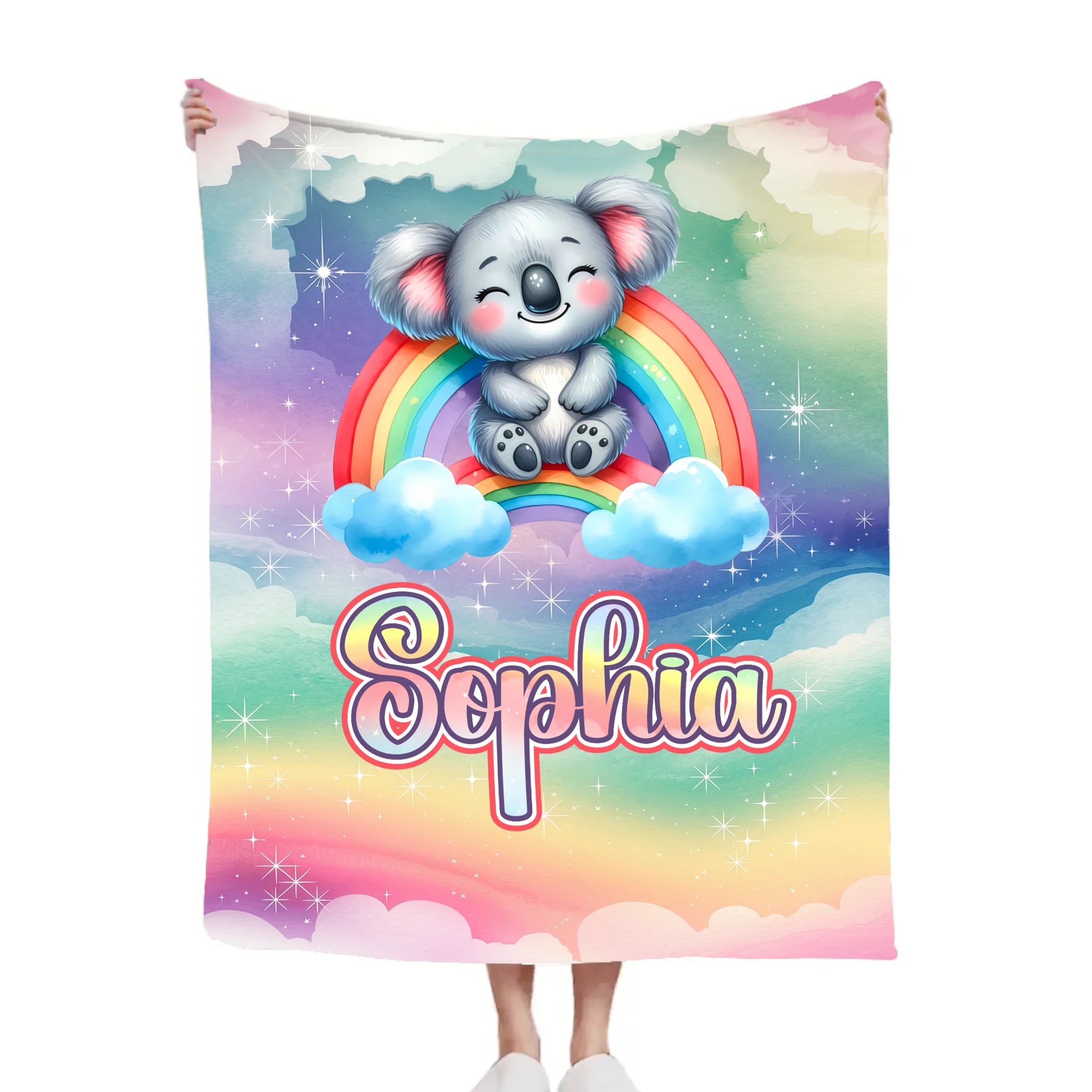 Available Product: The Dreaming Koala On The Rainbow Custom Blanket - Personalized Name - Start The School Season