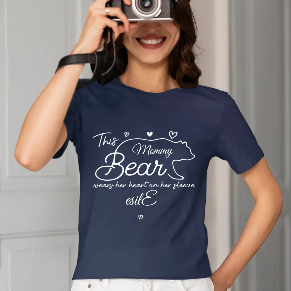 Available Product: This mama bear prints her heart on clothing - Family Personalized Unisex T-Shirt, Gift for Mom