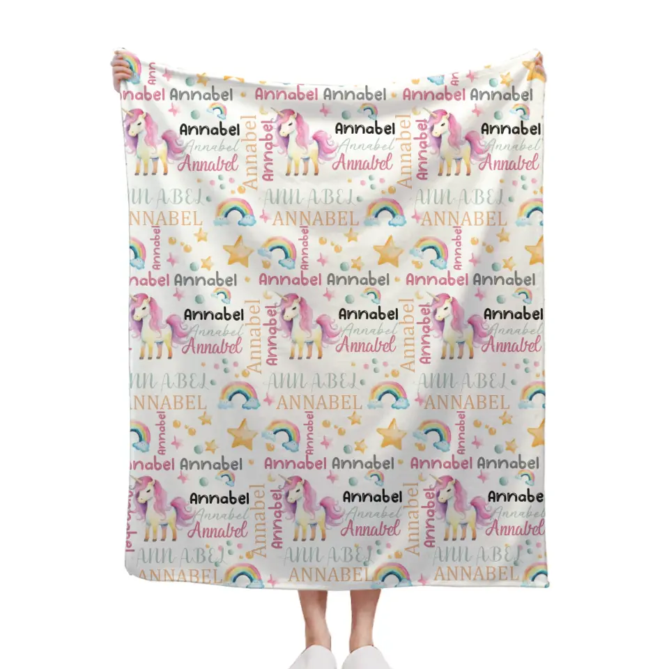 Available Product: Unicorn Pattern Name Custom Blanket For Boys Girls Babies
