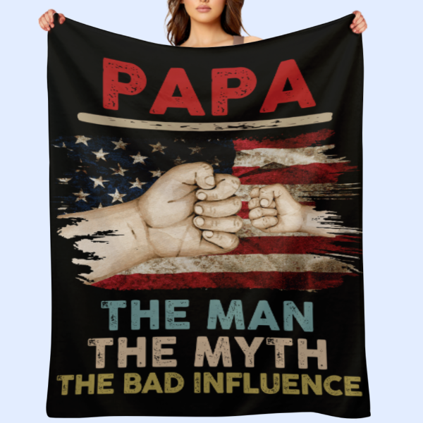 USA The Man The Myth The Bad Influence - Gift for Dad, Personalized Custom Blanket