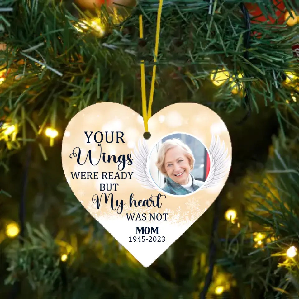Available Product: Your Wings Were Ready But My Heart Was Not - Custom Photo Acrylic Heart Ornament